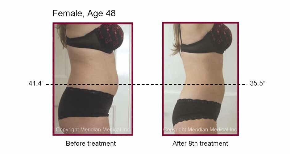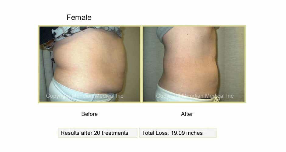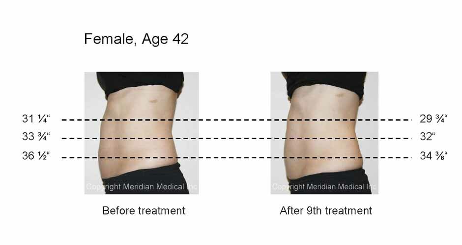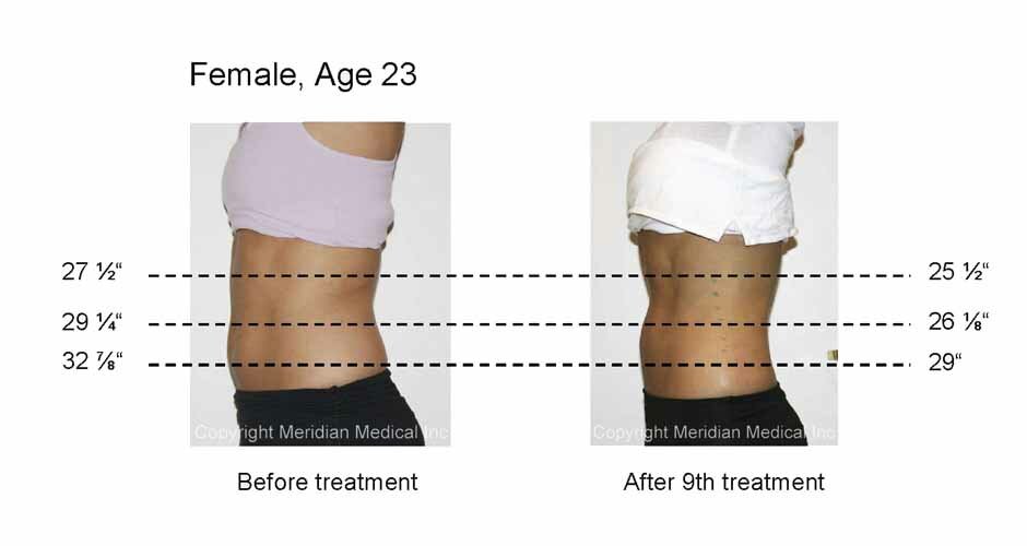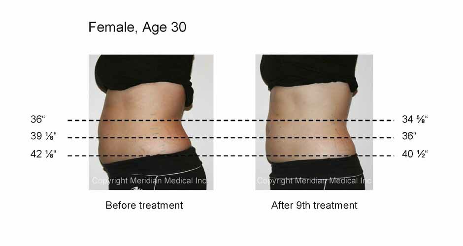 Lipolaser paddles containing laser diodes to emit specific wavelengths of light, constructed to target fat cells, are placed on the clients desired area in a 30 minute session. Laser energy safely and painlessly penetrates several millimeters into the subcutaneous adipose, or fat tissue layer. The adipose cell walls are made permeable for a temporary period allowing cell contents to spill out into the interstitial space. The fat, is converted into the form of triglyceride's- free fatty acids(FFA's), water and glycerol. The FFA's are utilized in the body as energy or are reabsorbed by the other cells, while water is utilized or excreted and glycerol is processed through natural metabolic functions including gluconeogenesis. Following the Lipolaser treatment, fat cells are significantly reduced in size resulting in substantial improvements and attractive Lipolaser before and after results.